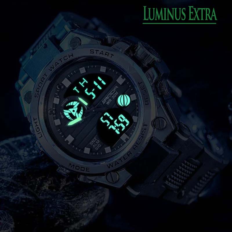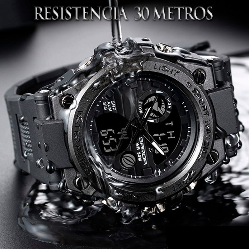 Pronto para o seu dia seja na selva ou na cidade, possui cronômetro, alarme e calendário completo, além de ser resistente a impactos e choques .