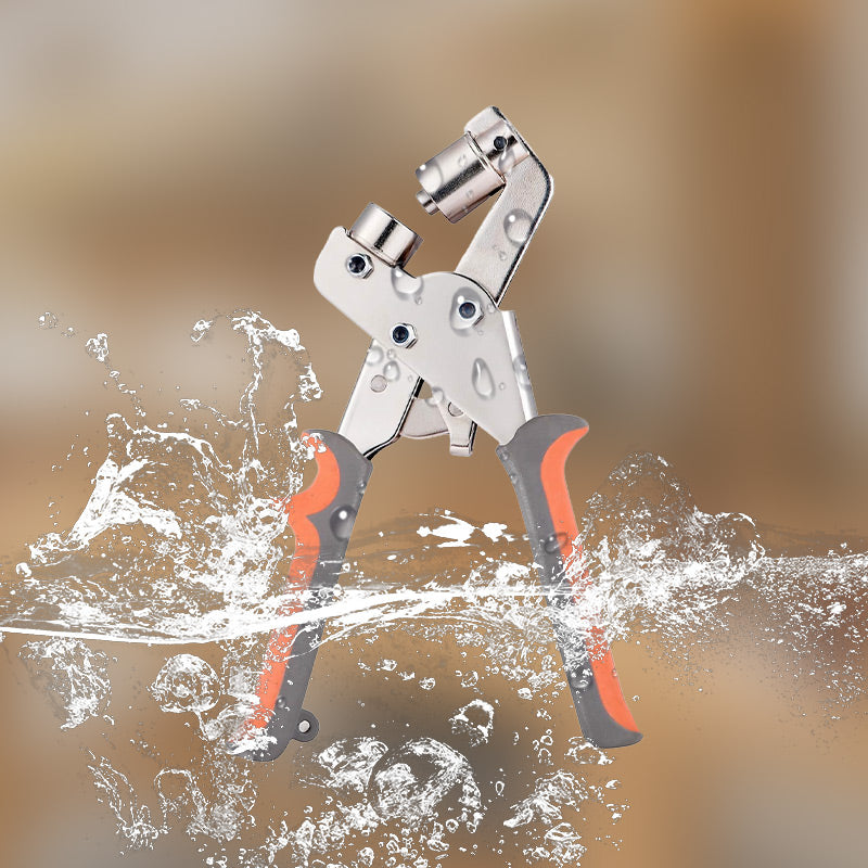 A estrutura de metal resistente garante que o alicate suporte a pressão necessária para perfurar tecidos grossos e criar ilhós seguros sem entortar ou quebrar.