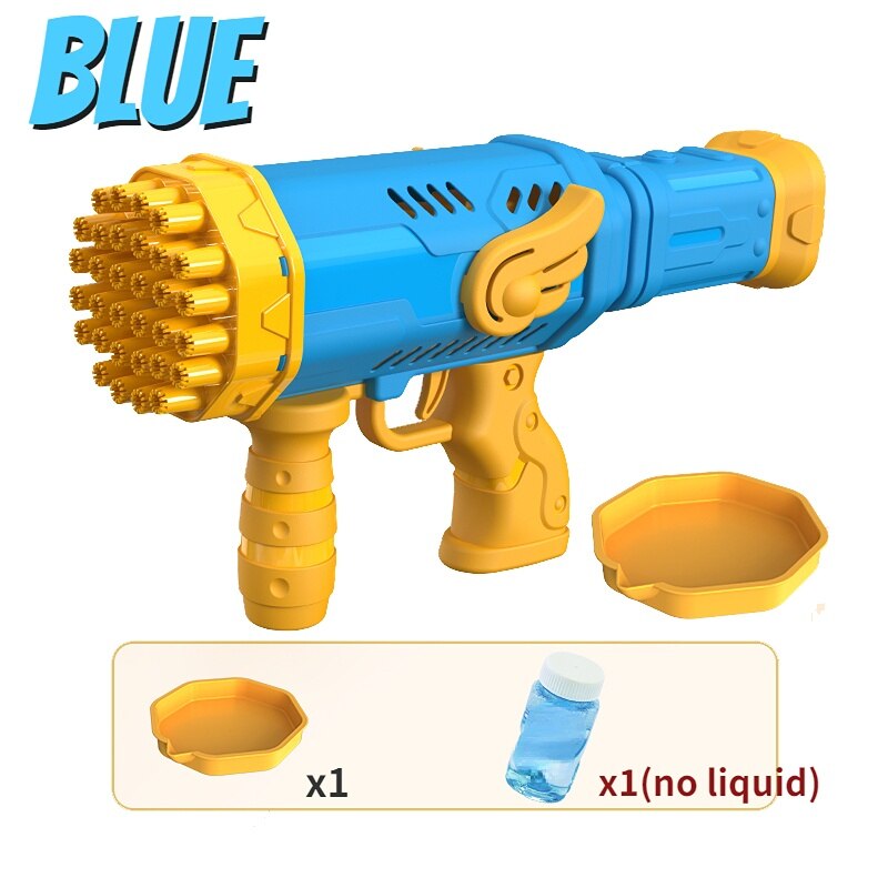 Após ligar o brinquedo, basta despejar o sabão no recipiente incluso, passar nele e disparar.